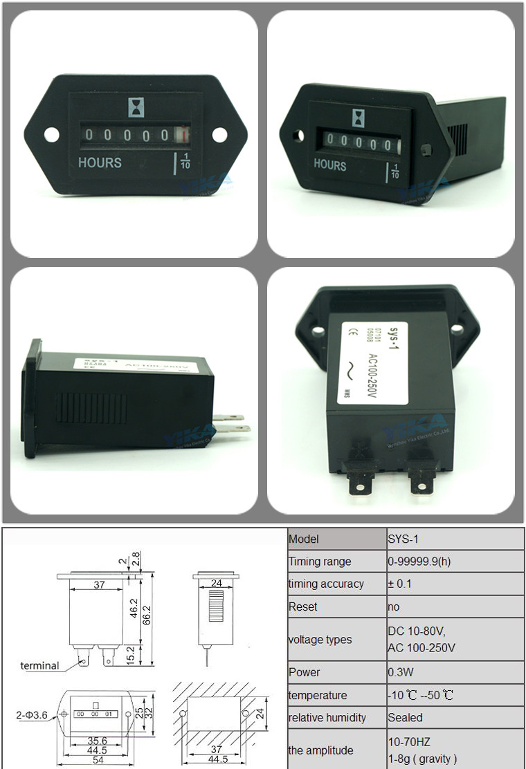 Brojač radnih sati, mehanički, radi na naponu od 10 do 40V DC