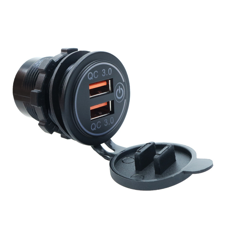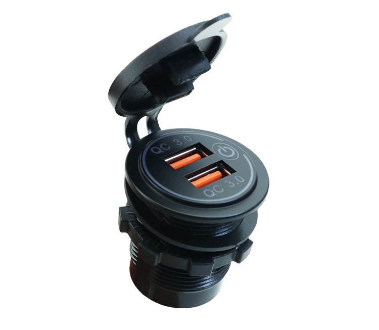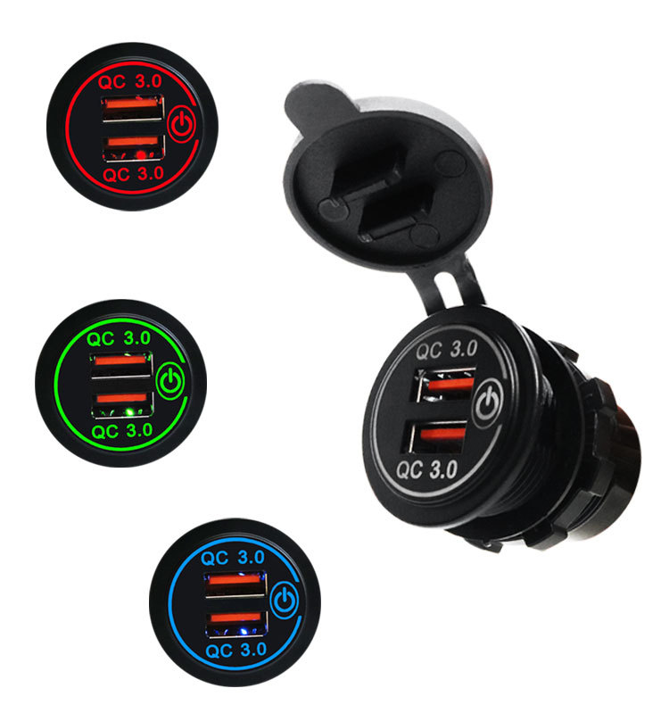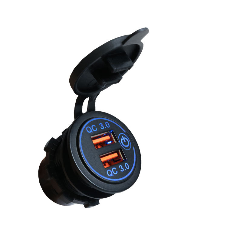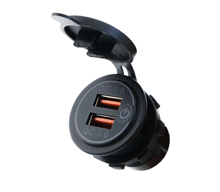 USB utičnica sa dva USB priključka od 3.0A za brzo punjenje, sa zaštitnim poklopcem i osvetljenjem (crvena ili plava boja).